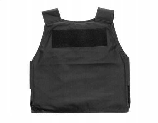 Велика панель із застібками на липучці, розміщена на задній частині бронежилета, дозволяє прикріпити службовий значок або логотип охоронної компанії.