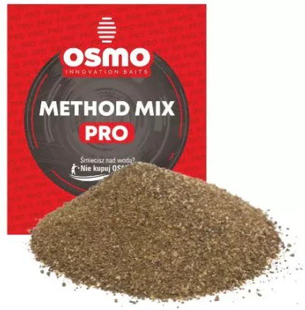 Osmo method mix pro - ідеально збалансована, поживна суміш, яка використовується для метод-фідерної ловлі. Містить велику кількість рибного борошна, завдяки чому у воді активізується прозора хмара. Прикормку можна використовувати окремо, бажано в пропорції 1:1 з Osmo Pro Pellet Dark, тоді вона приносить найкращі результати.