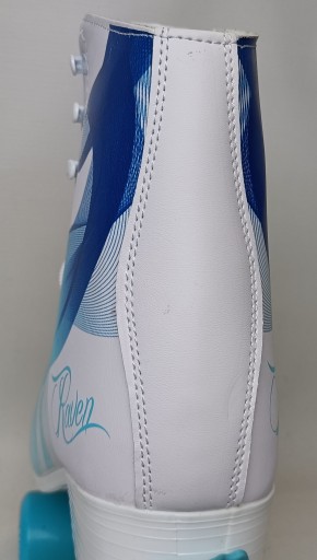Виставкові роликові ковзани в оригінальній, трохи потертій упаковці. Мають легкі забруднення, подряпини та зміни кольору на колесах.