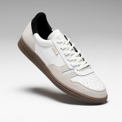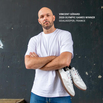 Після понад півтора років розробки наша команда пристрасних любителів гандболу із задоволенням представляє це воротарське взуття. «Взуття в досить простому стилі, але характеризується чудовим зчепленням із землею, дуже хорошою міцністю та відмінною реакцією на ворота», — говорить Мюріель, інженер, який розробив цю модель. Це можливо завдяки дуже клейкій гумовій підошві, що забезпечує швидші бічні рухи.