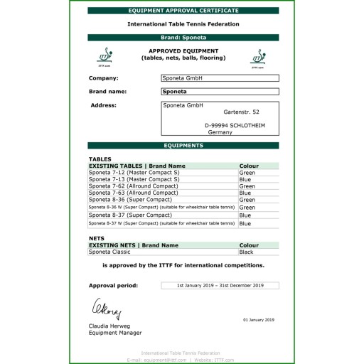 Sponeta - німецький бренд, що виробляє столи та аксесуари для настільного тенісу, продукція якого поставляється в 90 країн світу. Багаторічний досвід і відмінні відгуки гарантують задоволення від покупки. Продукцію Sponeta цінують як професіонали настільного тенісу, так і любителі