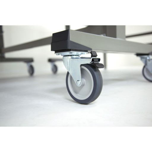 - 4 поворотних колеса діаметром 100 мм з гумовим протектором на кожному верху, 2 з блокадою