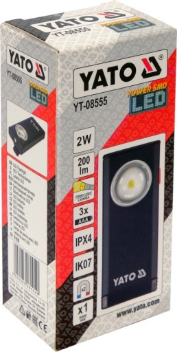 Міцний алюмінієвий ліхтарик Yato, оснащений діодом Osram, який забезпечує світло 200 лм і радіус дії 30 м.