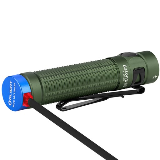 Ліхтарик акумуляторний Olight Baton 3 Pro Cool White OD Green - 1500 люмен (BATON 3 PRO CW OD GR) + безкоштовно: військова сумка