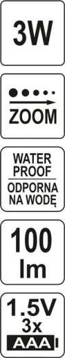 - 3 режими освітлення, функція масштабування, що змінює світловий промінь (базовий / економний / SOS)