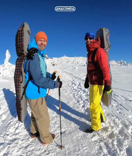 Чохол для сноуборду Anaconda дозволяє поставити його на дошку стоячи. Немає необхідності класти покриття на землю, що є важливою перевагою на тісних стоянках або під час танення снігу.
