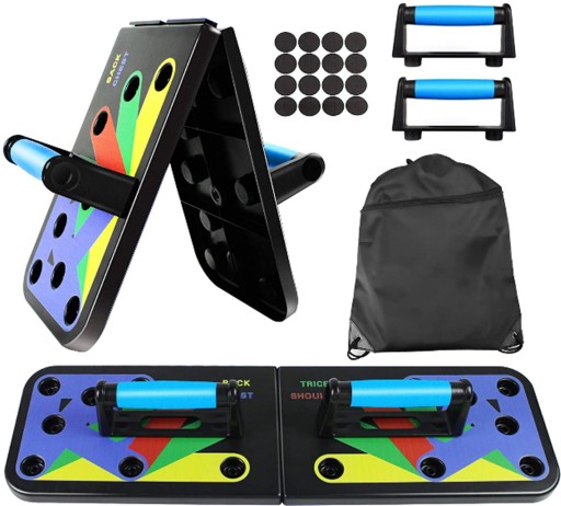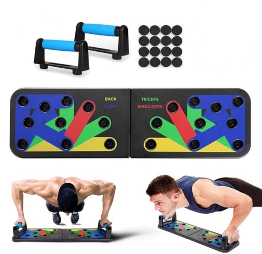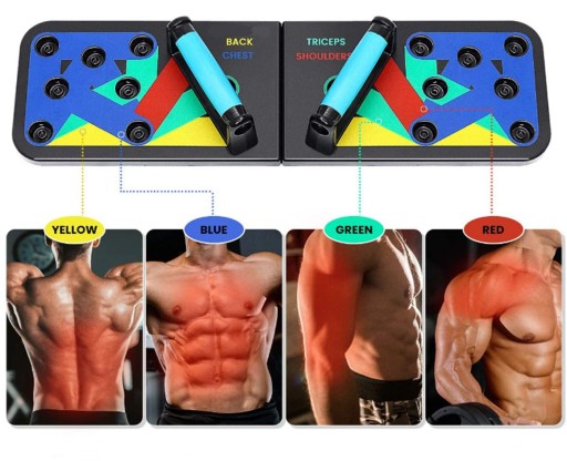 - Ця дошка для віджимань 14-в-1 — це інноваційна кольорова система тренувань для віджимань, яка зміцнює та формує всю верхню частину тіла, націлюючись на м’язи грудей, плечей, спини та трицепсів.