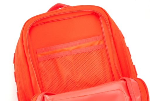 Крім того, рюкзак поставляється з широким знімним стегновим ременем, багатьма зміцнюючими ремінцями та точками кріплення MOLLE. Зверху є міцна ручка для перенесення рюкзака. Спинка підбита сіткою для повітропроникності та комфорту.