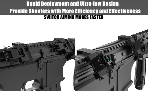 【Сильна адаптація та швидкий перехід】 Конструкція під кутом 45 робить його придатним як для лівшів, так і для правшів, а зміщення на 45 градусів дозволяє переходити від прицілу до заліза, просто піднявши лікоть, щоб повернути вогнепальну зброю.
