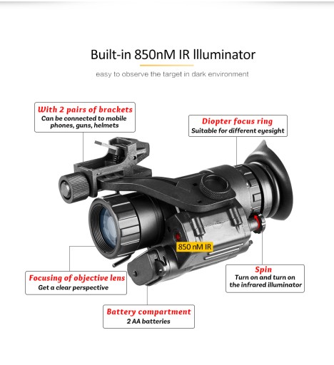 Монокуляр нічного бачення можна порівняти з малопотужним мініатюрним телескопом або окулярами нічного бачення. Ви тримаєте цей прилад у руці, як бінокль, але дивитися на нього можна лише одним оком, як у телескоп.