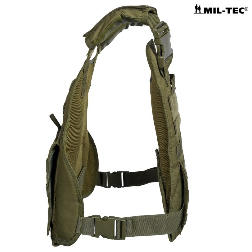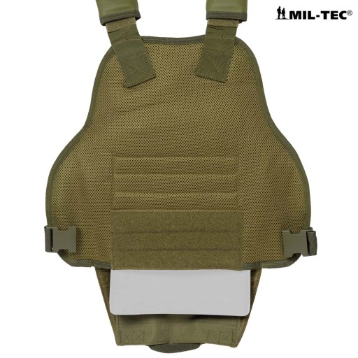 Інтегрований жилет поєднує в собі функції бронежилета і тактичного жилета. Продукт німецького бренду Mil-Tec. Пристосований для носіння куленепробивних балістичних пластин SAPI / ESAPI і бічних пластин SAPI / ESAPI. Жилетка має Cammerband (бічний ремінь з панелями і кишенями для вставок) і Shoulderpads (м'які підплічники). Завдяки бічним лямкам, жилет можна використовувати без камербанта. Дуже функціональний дизайн, вся поверхня жилета оброблена модульними панелями в системі MOLLE / PALS. Можливість розширити жилет мішками, контейнерами та кишенями та адаптувати їх розташування відповідно до потреб.