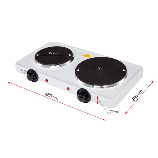 Двоконфорочна електроплита дозволяє одночасно використовувати дві нагрівальні плити різного розміру, загальною потужністю 2500 Вт. Модель AD 6504 стане в нагоді в багатьох ситуаціях - як при збої в газопостачанні або при неможливості підключення газу, так і при ремонті кухні, коли ви не можете використовувати стаціонарну плиту. Також електроплита стане в нагоді на дачі і в поїздках. Це набагато безпечніша альтернатива плитам, підключеним до газових балонів.