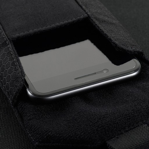 Всередині відділення для гаджетів виконано з м'якого оксамиту на липучках, що запобігає подряпинам скла. Чохол закривається на клапан з магнітною пряжкою Woojin, що гарантує надійний захист телефону від випадання. На клапані стильний шестикутник з логотипом компанії. Виріб кріпиться на пояс або кріпиться до обладнання за системою Molle.
