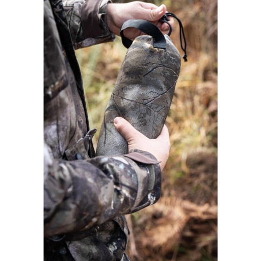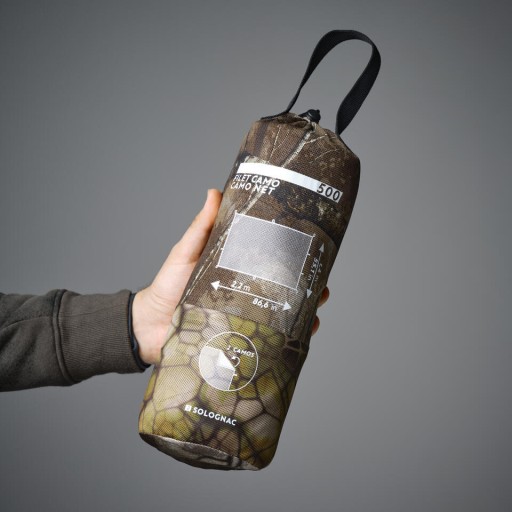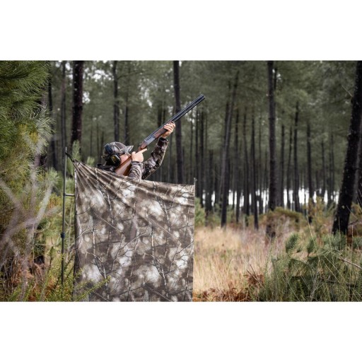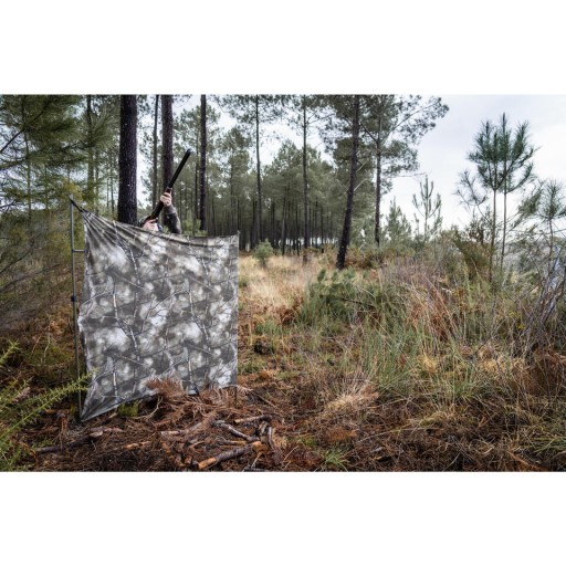 Двостороння камуфляжна сітка (2 шари), що забезпечує два різних мотиви камуфляжу (потайний і деревний), що підходить для більшості середовищ існування. Завдяки цій двосторонній маскувальній сітці (1,4 х 2,2 м) можна полювати в масці. 2D сітчаста структура.