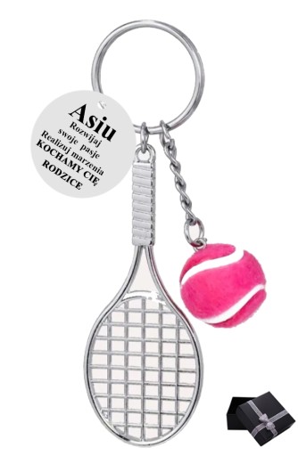 БРЕЛОК РАКЕТА ТЕНІС ГРАВІЮВАННЯ ІМЕНА ПОДАРУНОК СПОРТ РІЗДВО ДЕНЬ СВЯТОГО ВАЛЕНТИНА СКОРОЧКА C849