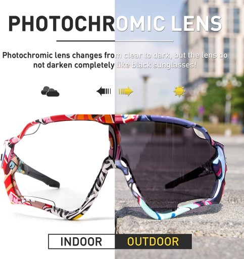 【Відчуття комфорту】Ці фотохромні велосипедні окуляри оснащені гнучкими дужками, які підходять для різних форм обличчя. М'які гумові носові подушечки не ковзають. Вбудована конструкція короткозорої оправи, зручна для встановлення окулярів.