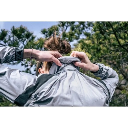 Застібається на блискавку, що забезпечує швидке надягання та вільну вентиляцію. Подовжена спинка з силіконовим покриттям надійно утримує куртку на місці. А шнурок на талії забезпечує точну посадку. Капюшон, захований у комір, забезпечує додатковий захист під час негоди. Куртка також має ремені на липучках, щоб ви могли прикріпити її до рами велосипеда. Крім того, 2 бічні кишені на блискавках і нагрудна кишеня дозволяють легко сховати цінні речі.