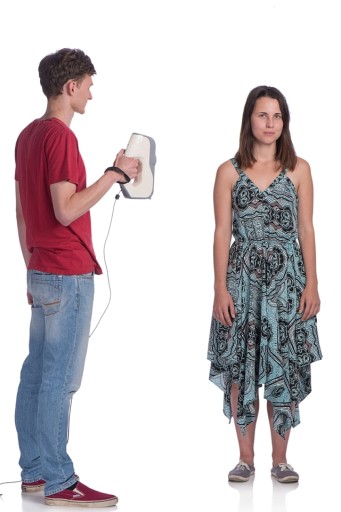 Сканер Artec Eva, який ми використовуємо, — це сканер, який випромінює звичайне біле світло, нешкідливе для людини.