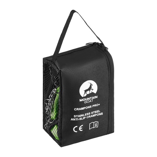 Кожен набір кошок Mountain Goat поставляється з практичним чохлом на блискавці. Чохол з міцного матеріалу захистить вміст вашого рюкзака від пошкоджень корчами. Він оснащений тримачем, за допомогою якого ви можете прикріпити кошики до взуття на зовнішній стороні рюкзака, забезпечуючи легкий доступ, коли вони вам знадобляться, без необхідності шукати вміст рюкзака. Сітчаста сторона допомагає висушити руки та захищає від води талого снігу, що збирається в чохлі.