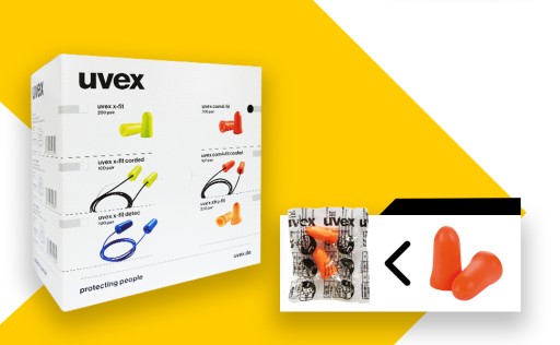 Заглушки uvex com4-fit упаковані в коробку, що містить 200 пар заглушок, кожна пара заглушок упакована окремо для підвищення гігієни.