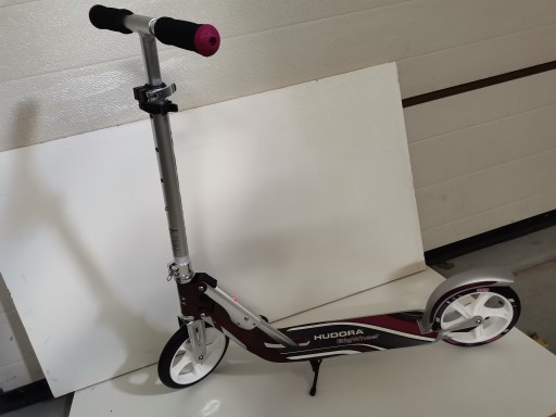 BIG WHEEL 205 Складаний алюмінієвий самокат від німецької компанії HUDORA з великими колесами 205мм і максимальним навантаженням 100кг!!! Самокат із останньої лінії RX PRO Technology, колір пурпуровий. Цей самокат є чудовим транспортним засобом: колеса 205 мм = 3x далі та 3x швидше, ніж пішки... . НОВИНКА! Заднє фрикційне гальмо, інтегроване з крилом. Занижена платформа «Low Ride r» полегшує посадку та висадку з скутера. Самокат з останньої лінійки Hudora RX PRO Technologies. Технічні характеристики самоката HUDORA BIG WHEEL 205: алюмінієва складна конструкція + БЕЗ РЕМЕНЯ для носіння на ПЛЕЧІ. Заднє фрикційне гальмо вбудоване в крило! Занижена платформа "Low Ride r" полегшує посадку та висадку з скутера. Самокат з останньої лінійки RX PRO. Технології макс. навантаження до 100кг! великі гумові колеса PU High Rebound 205 мм з підшипниками ABEC 5 підніжка для паркування регульована висота керма 79-103 см розмір основи 33x11,5 см вага лише 4,1 кг фірмова якість німецької компанії Hudora сучасний та елегантний зовнішній вигляд Пурпурний колір сертифікат TÜV та GS-geprüft відповідно до . Гарантія EN 14619 2 роки Компанія Hudora надає можливість згодом придбати запчастини, наприклад, колеса з підшипниками, які забезпечать задоволення протягом багатьох років..... ВИСТАВКОВИЙ самокат в оригінальній потертій упаковці.