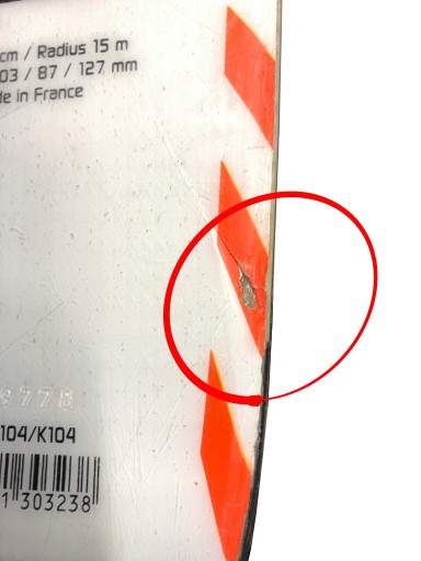 Лижі: 75% ковзання та стан кантів порівняно з новими лижами. На висоті приблизно 20 см від низу лиж трохи менше кантів (фото). Плавне ковзання, без тріщин і дефектів. Застосовується нова структура, вартістю 120 злотих.