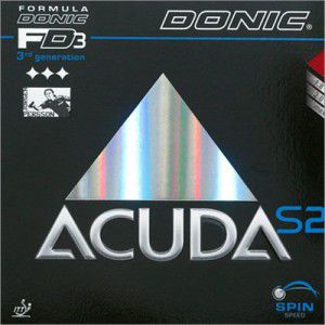 Гуми серії Acuda відрізняються тим, що при їх виробництві наголос робився на отримання максимально можливого обертання. Крім того, вони були озброєні технологією Formula Donic третього покоління. Збільшено їх міцність, катапульти і вдосконалено ефект свіжого клею. Acuda S2 - гума середньої жорсткості, відмінна пропозиція для універсальних і атакуючих гравців. Ідеально підходить для топспінових ігор.