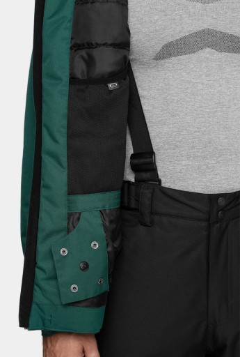 - 4 зовнішні кишені на блискавці: 2 асиметричні кишені з боків + 1 нагрудна кишеня на ламінованій блискавці + 1 кишеня для лижного абонементу на лівому рукаві зі складкою,