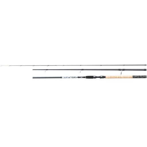 FEEDER ACADEMY X Друге «фідерне» вудилище в серії в програмі ACADEMY. Бланк з карбонового волокна C24T, направляючі SLIM OXIDE TITANIUM OXIDE. Міцні вудилища, призначені для важкої та середньої ловлі. У комплект входять три вібраційних наконечника зі скловолокна. Представлена модель має довжину 360 см і вагу закидання до 120 г