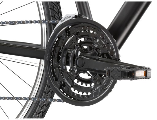 KROSS Evado 1.0 оснащений аксесуарами Shimano. Японський виробник створив перемикачі, перемикачі передач і касету, які ідеально підходять для пересування як містом, так і лісом. Ось чому ви знайдете його у своєму Kross Evado 1.0. Також на велосипеді є амортизаційна вилка з ходом 30 міліметрів. Завдяки такому рішенню ви збережете комфорт при їзді по нерівних поверхнях і уникнете надмірної втоми від постійної роботи кузова на нерівностях. Це дозволить вам дістатися швидше і менше втомлюватися, зберігши більше сил на решту дня. KROSS Evado 1.0 також має 28-дюймові колеса, оснащені шинами шириною 45 міліметрів, що дозволяє ефективно пересуватися як містом, так і за його межами.