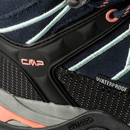 Водонепроникне туристичне взуття CMP із кольоровими деталями, які виділяються та привертають увагу, зберігає спортивний дизайн. Підошва на основі технології CMP FullOn GRIP забезпечує дуже хороше зчеплення з різними типами поверхонь. Взуття RIGEL має вбудований стабілізатор щиколотки з кевлару - одного з найміцніших матеріалів, волокна якого стійкі до розтягування. Це надає щиколотці жорсткості та опори, що не дозволяє їй рухатися під час ходьби по нерівній місцевості. Підошва взуття виготовлена з легкої, гнучкої та пружної піни EVA (етилен-вінілацетату). Додаткове посилення TPU було використано в задній частині підошви для підвищення стабільності та підтримки стопи. Трекінгове взуття Rigel доступне у версії High MID зі шкіри та у версії LOW, оздобленій сітчастим матеріалом з високим ступенем повітропроникності.