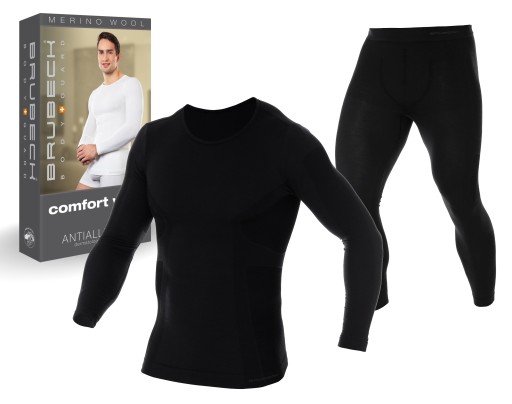 Комплект чоловічої термоактивної білизни BRUBECK COMFORT MERINO WOOL / футболка з довгим рукавом і легінси / - кращий вибір для чоловіків, які цінують комфорт і зручність. Незважаючи на те, що він рекомендований для щоденного використання, завдяки технічному трикотажу його можна використовувати і для легких спортивних занять. Приємний, м'який і ніжний матеріал в поєднанні з непомітною манжетою гарантує комфорт протягом усього дня. Завдяки використанню мериносової вовни білизна не вбирає неприємні запахи, не викликає алергії та є антибактеріальним. Навіть дуже чутливі до вовни чоловіки можуть використовувати одяг з колекції Comfort Wool. Двошаровий трикотаж, зовні вовна, всередині поліамід, що захищає від прямого контакту зі шкірою. Завдяки цьому одяг не дряпає і не дратує тіло. Поєднання вовни і високоякісного поліаміду значно прискорює процес відведення вологи. Чоловіча дихаюча термоактивна білизна Brubeck Comfort Wool може успішно використовуватися для багатьох видів спорту середньої інтенсивності. Одяг ідеально підходить для легких гірських походів, трекінгу та повсякденного використання.