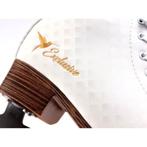 Жіночі фігурні ковзани на шнурівці, модель: Ексклюзив. Класичний, білого кольору, прикрашений ніжним золотим принтом.