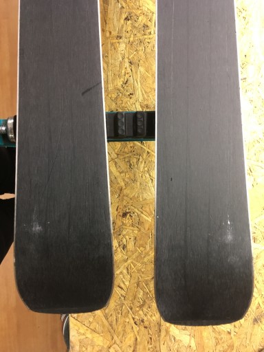 Пропоновані лижі знаходяться в хорошому/задовільному візуальному стані - вони демонструють нормальні ознаки використання (подряпини) і кілька великих потертостей на ламінаті (усі дефекти видно на фотографіях); слайди в хорошому стані - кілька видимих подряпин, без глибоких подряпин і дефектів, цілі, широкі краї. Прив'язки функціональні. Лижі підготовлені до сезону, тобто наточені та змащені.