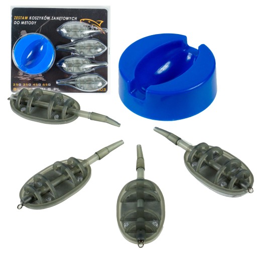 Набір кошиків для прикормок для методу Це кошик, спеціально підготовлений для лову так званим методом. З тонкими тремтливими вудками, з установками з дуже короткими поводками. Що в поєднанні з точковою наживкою, для якої цей кошик ідеально підходить, робить його дуже ефективною технікою для лову великого коропа, ляща та іншої риби.