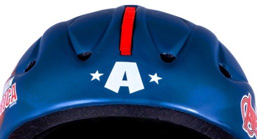 Шолом має сучасний дизайн і форму, а також додатково прикрашений графікою із зображенням героя Marvel - КАПІТАНА АМЕРИКИ.