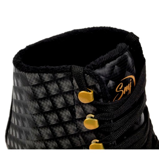 Жіночі фігурні ковзани на шнурівці, модель: Ексклюзив. Класичний, чорний колір, прикрашений ніжним золотим принтом.