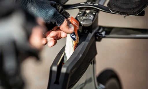 Аеродинамічна конструкція, встановлена на верхній трубі, мінімізує опір повітря, одночасно усуваючи перешкоди для ніг. Встановлюється за допомогою вбудованих розеток або фіксуючих ременів без. Великий отвір забезпечує швидкий і зручний доступ до батончиків, гелів та інших енергетичних елементів. Сумісний з триатлоном, гонкою на час і шосейними велосипедами.