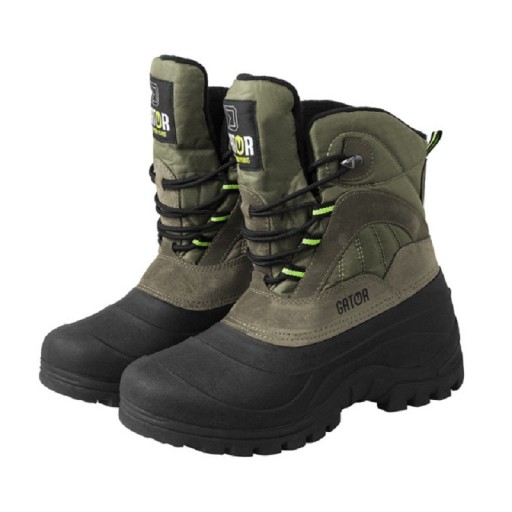 Взуття Delphin GATOR створене для екстремальних експедицій, особливо в холодну пору року. Рельєфна гумова підошва сягає щиколоток, а це означає, що прогулянка по калюжах, грязі та багнюці для GATOR не проблема. Цю гумову частину також дуже легко чистити. На задній частині гумової частини взуття є язичок, який дозволяє легко зняти взуття. Верх взуття виготовлений із комбінації міцної нейлонової тканини та штучної шкіри. Ці матеріали стійкі до негоди і при необхідності їх легко просочити. Язичок черевика вшитий на висоту 17 см, що дозволяє пересуватися в таких глибоких мокрих місцях недовго. Шнурівка виконується за допомогою текстильних люверсів, на шнурку є одне металеве вушко. Внутрішня частина взуття виконана з приємного мікрофлісу. Тепловий комфорт забезпечує шар штучної мікрофібри між зовнішнім і внутрішнім шарами. Чорно-зелене поєднання матеріалів оцінять не тільки рибалки, а й мисливці, туристи та всі любителі природи. Незважаючи на свою вагу, взуття дуже легке, що неодмінно стане в нагоді під час тривалих прогулянок.