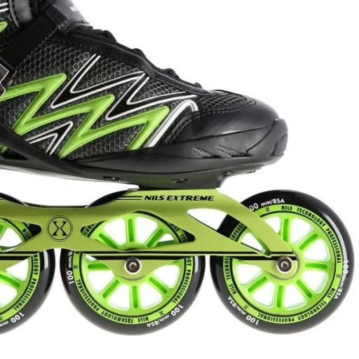 NA8660 Nils Extreme - це модель роликових ковзанів, призначена для любителів середнього рівня катання. Це поєднання цікавого дизайну з високоякісними матеріалами, які гарантують дуже високий комфорт використання. Взуття виготовлене з матеріалу EVA і оксамиту, а також сітки MESH. Завдяки цьому їзда буде надзвичайно комфортною. Крім того, взуття вентилюється. Підшипники класу ABEC9 забезпечують високу якість тяги.
