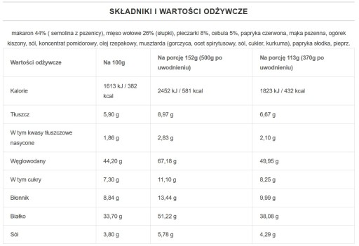 - Калорійність: 1613 кДж / 382 ккал / 1823 кДж / 432 ккал