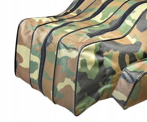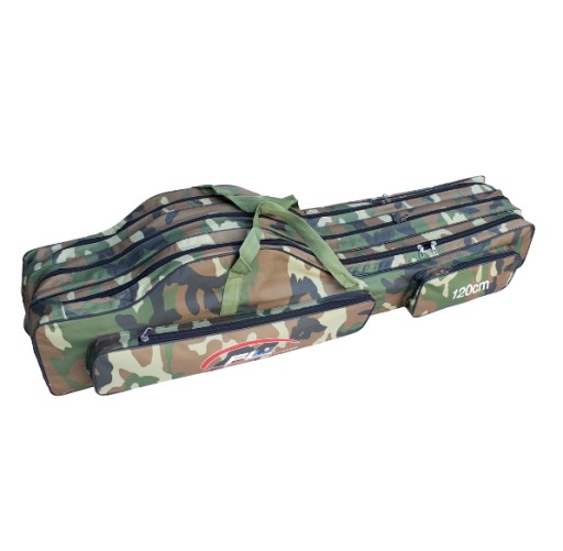 Жорстка трикамерна кришка. Крім того, гнучка і злегка жорстка структура з карбоновими стрічками і міцними блискавками забезпечує 100% захист вудилищ. Дуже якісний. 100% водонепроникний матеріал. Дві бічні кишені для аксесуарів. Сумка має лямки для носіння вудки на спині і звичайні типові вушка.