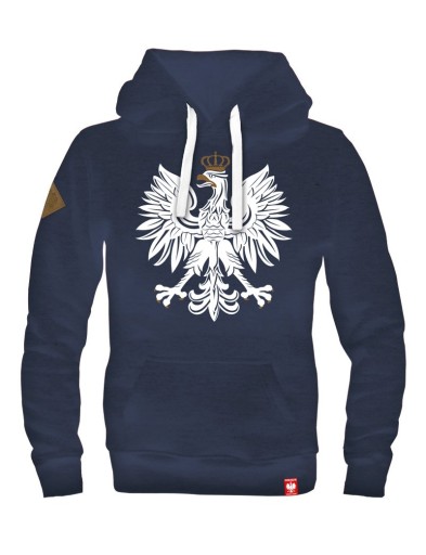 Світшот прикрашений нашими звичайними аксесуарами у вигляді фірмових жаккардів і нашивок. Він також має власний унікальний, зроблений з нуля крой. Зав'язки капюшона білі, контрастують з матеріалом і додатково підкреслюють білого орла. Світшот виготовлений з матеріалів найвищої якості від польських постачальників.