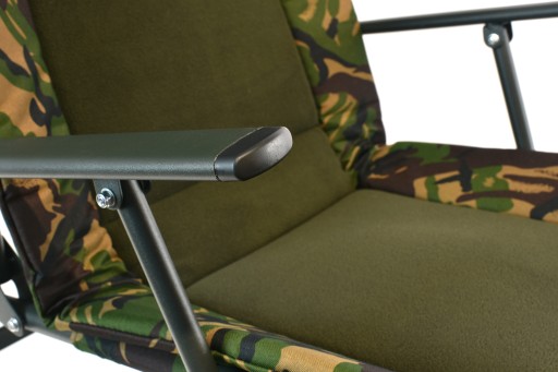 Зручне крісло з міцною конструкцією, оснащене алюмінієвими підлокітниками. Виготовлений з міцного і стійкого матеріалу, наповненого бічним камуфляжем, спеціально потовщеним для підвищення комфорту використання. Ідеально підходить для довгих і швидких поїздок, дуже зручний і зручний.