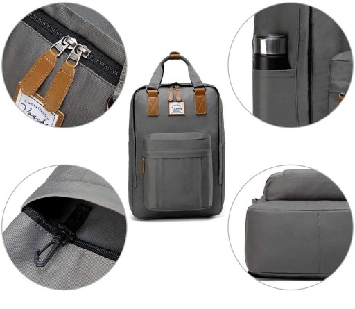 - Вінтажний дизайн: повсякденний рюкзак Vaschy виготовлений з високоякісної водонепроникної, м'якої та міцної вінілової тканини. Вінтажний дизайн має прямокутну обтічну форму з двома верхніми ручками та регульованими лямками для легкого та зручного носіння, двома кишенями для води з обох боків для зберігання пляшки з водою та парасольки.