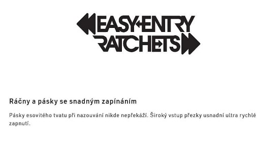 Технологія Easy-Entry-Ratchets: важелі та ремені з легким застібанням, широка пряжка забезпечує надшвидке застібання