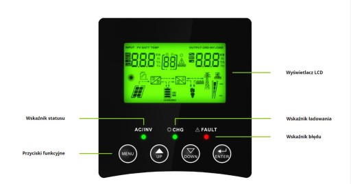 - Контролер MPPT, вбудований в інвертор, дозволяє перетворювати енергію, отриману від сонячних панелей, в електрику з відповідними параметрами, необхідними для зарядки акумуляторів і живлення пристроїв у вашому домі.