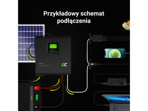 - Сонячний інвертор Green Cell поєднує в собі три пристрої: контролер MPPT, інвертор і зарядний пристрій, завдяки чому він здатний забезпечити безперервне енергопостачання ваших пристроїв.