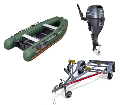 Предметом онлайн-аукціону є набір, що складається з понтона KM-360 DSL, підвісного двигуна Sail 15KM і човнового причепа Temared ECO B05.