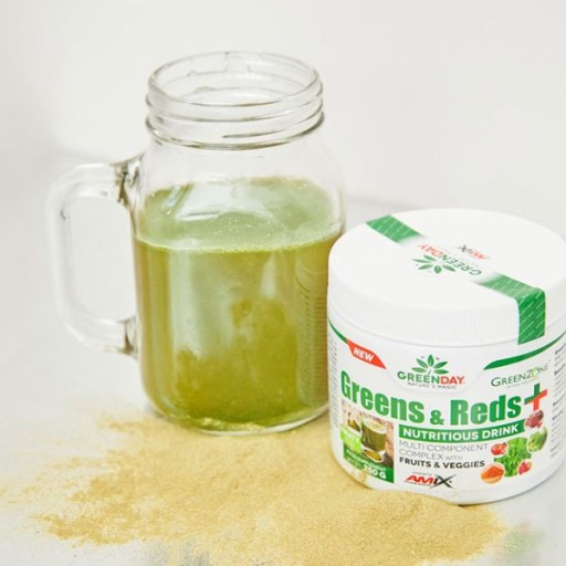 Завдяки GreenDay Greens & Reds ви отримаєте всі переваги споживання овочів, фруктів і т.зв. чудова їжа. Усе у формі зручного порошку з фантастичним смаком. Подбайте про своє здоров'я та забезпечте незліченну кількість антиоксидантів, вітамінів, мінералів і речовин, які благотворно впливають на організм.